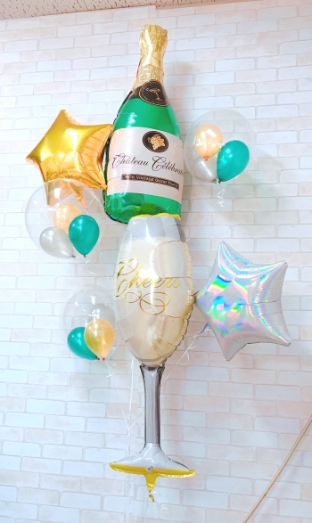 | 仕様 | シャンパンボトルバルーン 1個 シャンパングラスバルーン 1個 ゴールドスターバルーン 1個 シルバースターバルーン 1個 クリアバルーン(ミニバルーン3球入) 3個 |