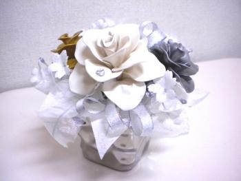 | 仕様 | 大ローズ(バルーン13枚使用)1輪 中ローズ(バルーン8枚使用)2輪 ラウンドバルーン 1個 花器・・・陶器シルバーベース |