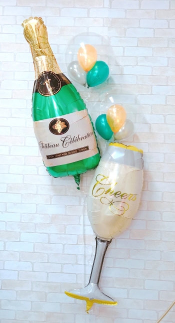 | 仕様 | シャンパンボトルバルーン 1個 シャンパングラスバルーン 1個 クリアバルーン(ミニバルーン3球入) 2個 |