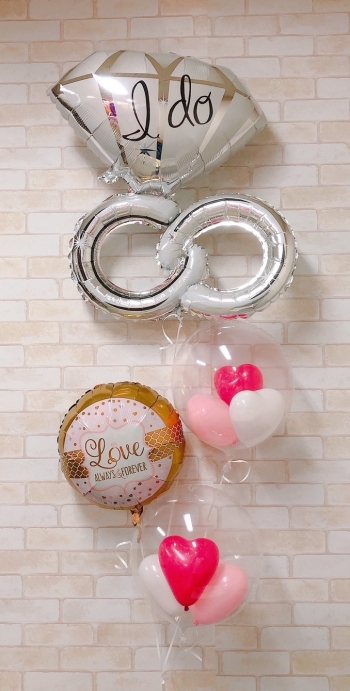 | 仕様 | ウェディングリング型バルーン 1個 ドレス柄バルーン 1個 クリアバルーン(ミニバルーン3球入)1個 |
