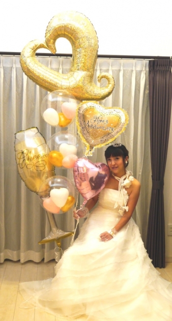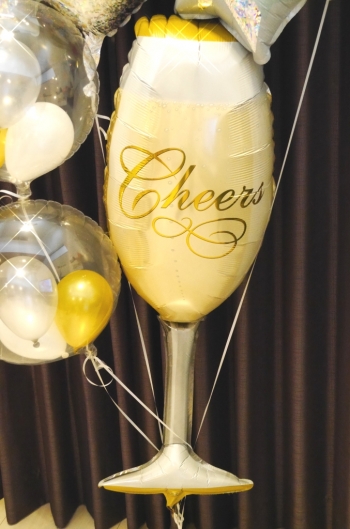 | 仕様 | ゴールドハートバルーン 1個 シャンパングラスバルーン 1個 メッセージバルーン 1個 ピンクハートバルーン 1個 クリアバルーン(ミニバルーン3球入) 3個 |