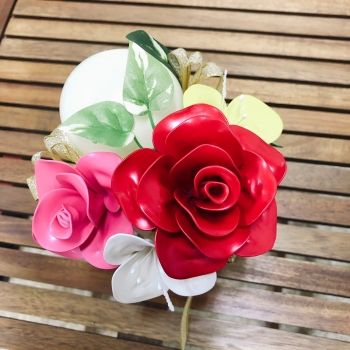 | 仕様 | 大ローズ(バルーン13枚使用) 1輪 中ローズ(バルーン7枚使用) 1輪 小花 2輪 ラウンドバルーン 1個 花器・・・陶器ホワイトベース |