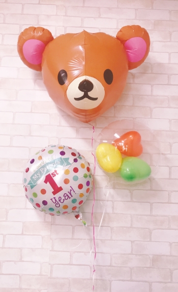 クマさんバルーンと1stバースデイバルーンの組み合わせがとってもキュートな商品です