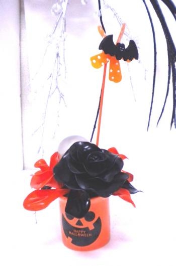 | 仕様 | 大ローズ1輪 中ローズ1輪 ラウンドバルーン 1個 花器…陶器ハロウィンカップ |
