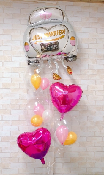 | 仕様 | ビッグサイズ ウェディングカー型バルーン 1個 ハート型バルーン 2個 クリアバルーン(ハートバルーン3球入)3個 |