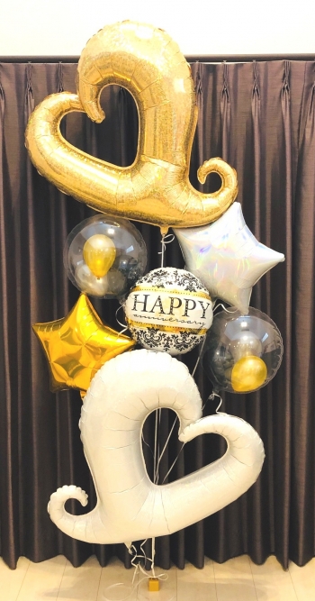 | 仕様 | ビッグサイズハートバルーン 2個 メッセージ付バルーン 1個 ハート型バルーン 2個 クリアバルーン(ミニバルーン3球入) 2個 |