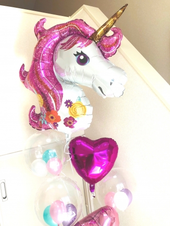 | 仕様 | ユニコーンバルーン 1個 ハート型バルーン2個 クリアバルーン(ミニバルーン3個入り)3個 |