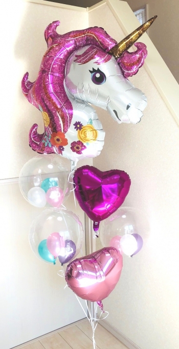 | 仕様 | ユニコーンバルーン 1個 ハート型バルーン2個 クリアバルーン(ミニバルーン3個入り)3個 |