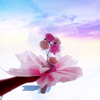 ドーム状のクリアバルーンの中に綺麗なアートフラワー(造花)が入った新感覚のブーケです。プレゼントをもらった側だけでなく、渡す側もつい嬉しくなる新しいバルーンギフトです。