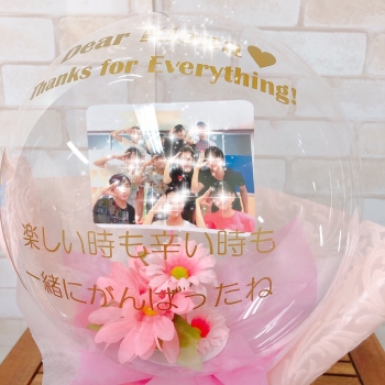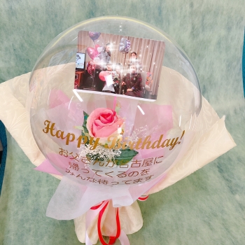 | 仕様 | ドーム状クリアバルーン 写真入り 文字入り アートフラワー(造花) グリップ付き ラッピングあり |