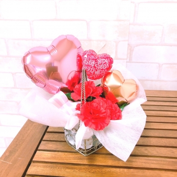 | 仕様 | ハート型バルーン 文字入りプチバルーン カーネーション・アーティフィシャルフラワー ラッピング |